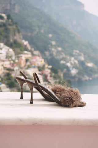 SANDALES À TALONS PLUMES SIMONA - MARRON
