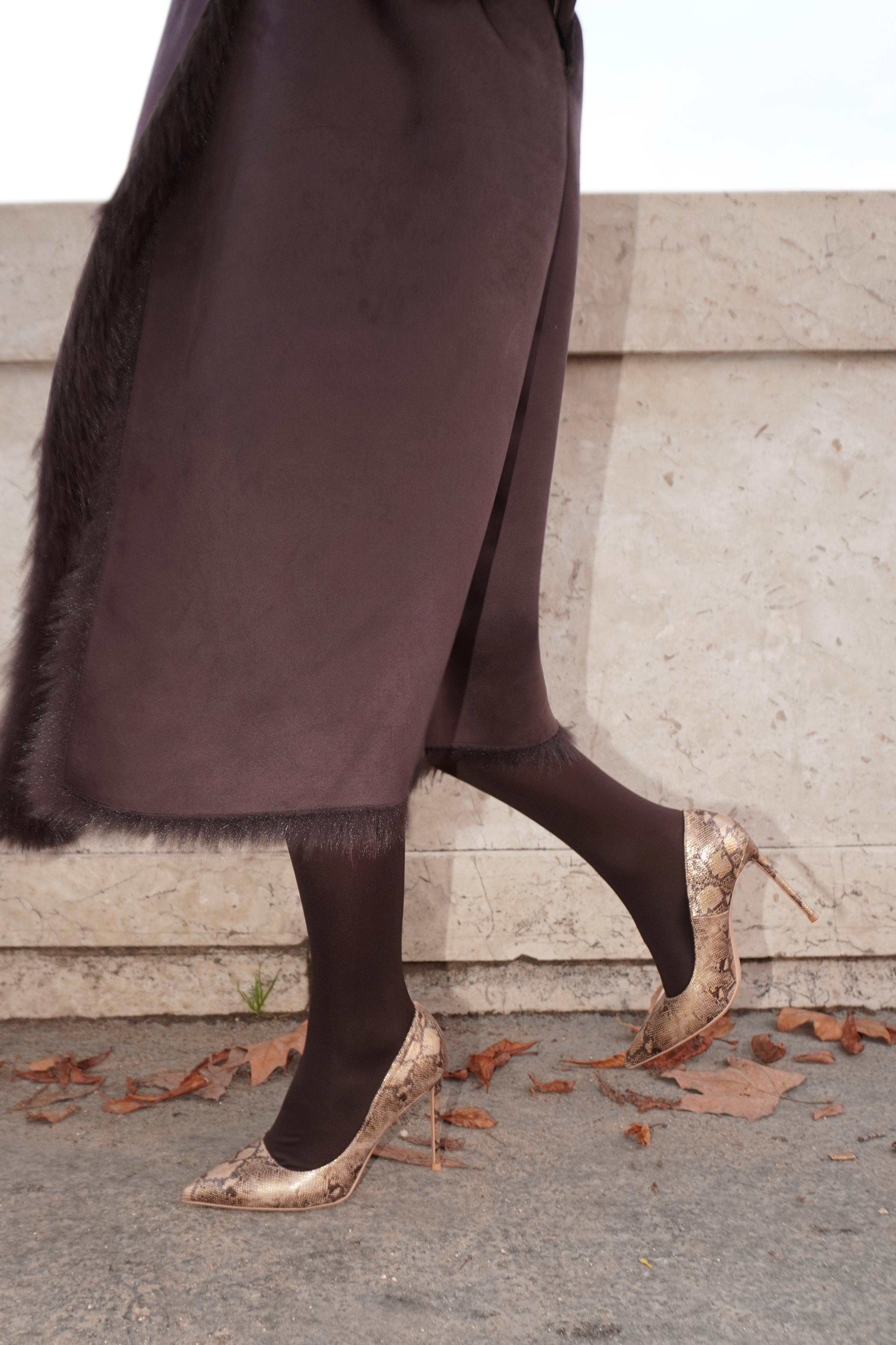 La paire qui fait toute la différence : un imprimé python chic, un talon élancé et une coupe ultra-féminine. Le combo parfait pour upgrader un look monochrome ou matcher avec une tenue all brown dans les rues de Paris.