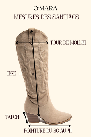 Pour les bottes et santiags O'MARA, on t’indique toujours deux infos clés dans la fiche produit :